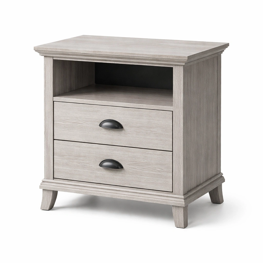 Nachttisch holz grau 2 schubladen offenes fach