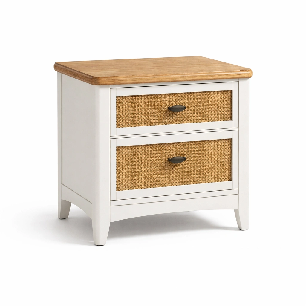 Nachttisch holz weiß braun rattan 2 schubladen