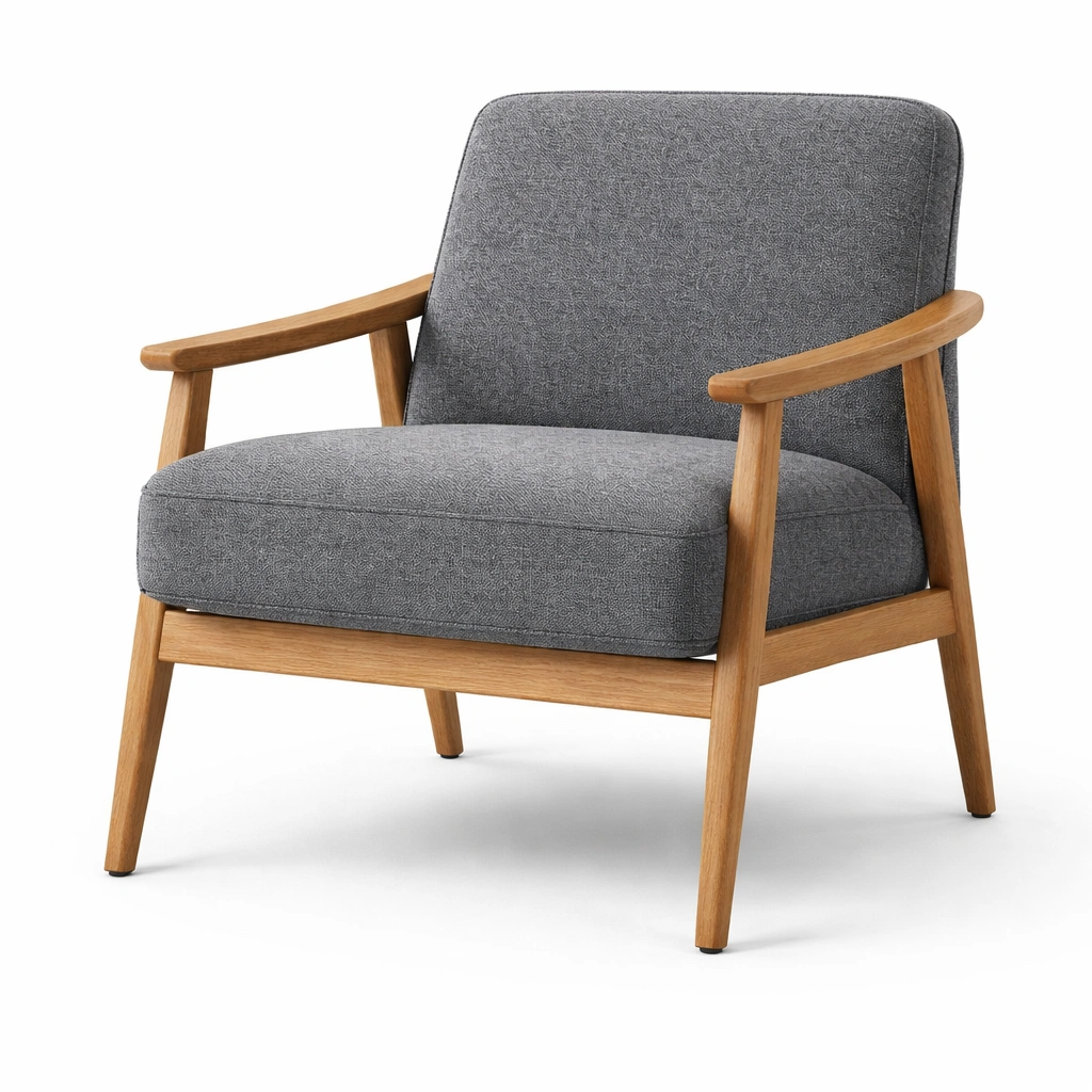 Material: Rahmen aus Eichenholz, Sitzfläche und Rückenlehne aus Leinenstoff, Polsterung aus hochdichtem Schaumstoff. Maximale Belastbarkeit: 120 kg.